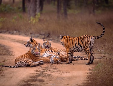 Set in the forests of Central India — across Tadoba-Andhari Tiger Reserve, Kanha Tiger Reserve, and Panna Tiger Reserve.